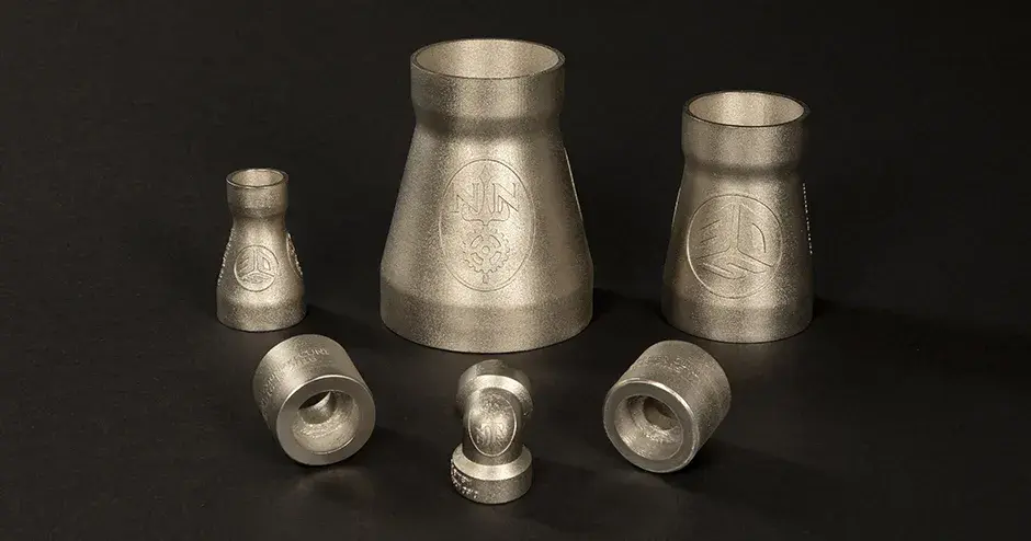 Verschiedene Rohrformstücke, die von Newport News Shipbuilding unter Verwendung des zertifizierten CuNi30-Werkstoffs auf der Direktmetalldruck-Hardware von 3D Systems gedruckt wurden.